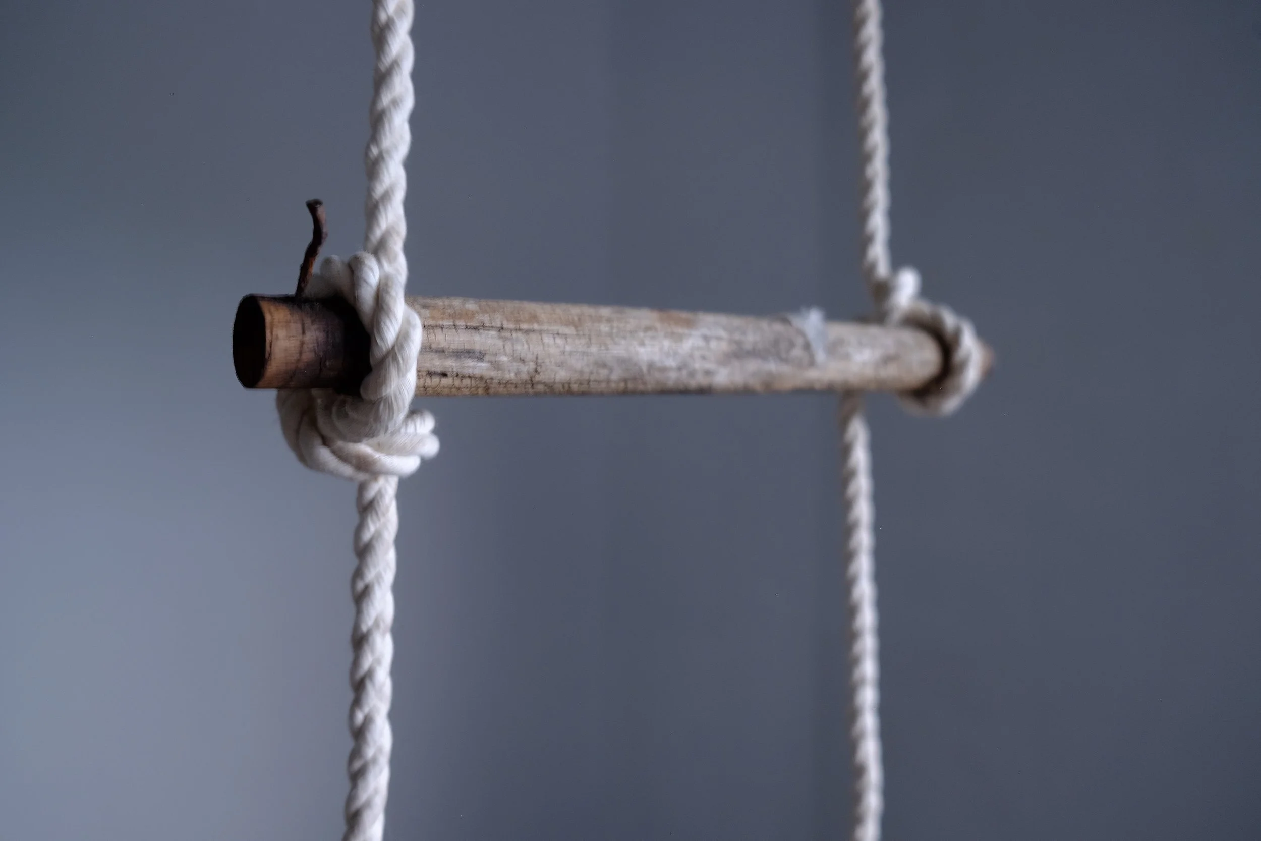 “Climax” Dimensions variable, Bioplastic, rope, ladder rungs, frankincense, humidity 2022